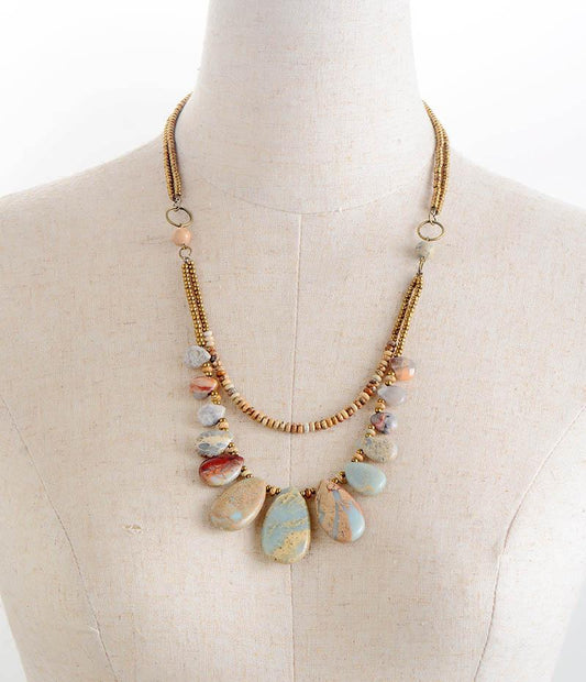 Teardrop - Natural Jasper Stone Beaded Statement Necklace