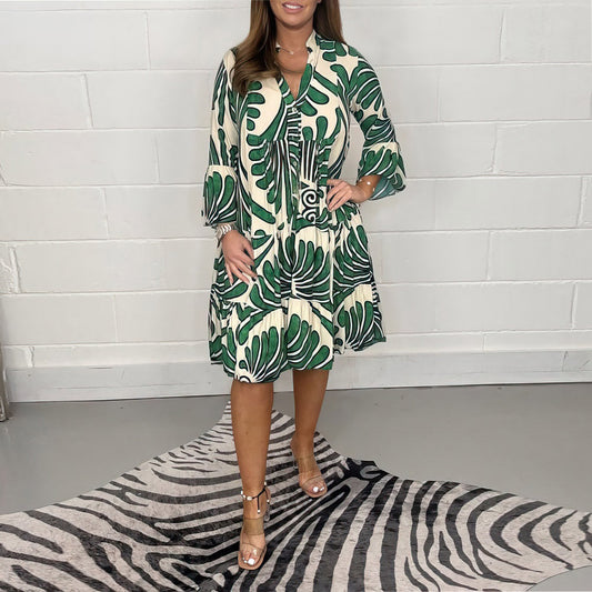 Amira - Geometric V-Neck Dress